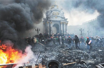 烏克蘭警民衝突十八日造成員警與平民喪生後,烏克蘭總統亞努科維奇十九日與在野領袖緊急會商,達成停火協議。但幾小時後,首都基輔的獨立廣場二十日再度爆發警民衝突。根據烏國當局統計,三天來有七十五人死亡。反政府陣營醫療小組則說,僅二十日就有上百名示威者喪生。在流血衝突的核心地帶獨立廣場上,彈孔累累的遺體觸目可見,反對者用以對抗真槍實彈的自製燃燒彈,則使廣場留下焦痕處處。
