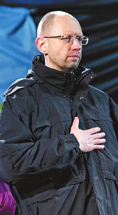 【本報綜合外電報導】主導烏克蘭抗議風潮的「歐洲獨立廣場」(Euromaidan)委員會二十六日提出以抗議陣營領導人物為主體的臨時政府成員名單,總理人選是三十九歲的「祖國黨」主席、前國會議長、前經濟部長耶森尤克(左圖/路透)。臨時政府將視事到五月二十五日大選。