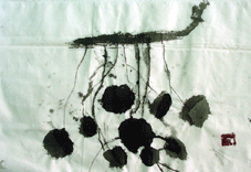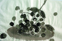 利用龍眼提供的主要造型特色──果實的點、枝條的線,藉由水墨的媒材表現是練習的主題。