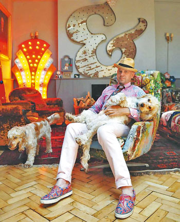 目前與太太和兩隻愛犬住在英格蘭的海邊,菲利普除了衣著大膽,在他家,你還能發現很多稀奇古怪的裝飾。即使你的雙眼已經被四周閃閃爍爍的燈泡弄得眼花撩亂,沒察覺大廳一角的油畫原來掩藏著他的私人酒吧,但也或多或少都能感受到他的鬼馬性格。