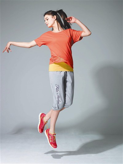 6.明亮設計搭配罩衫穿搭出層次變化,天使袖T型罩衫,蝴蝶綁帶和垂墜設計,讓瑜伽服飾增添時裝浪漫氛圍,隨生活場景恣意搭配,展現出獨特品味。