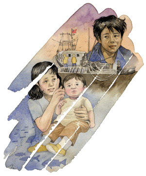 這一離別將是數不盡的地球自轉、月兒將無數趟圓缺循環;遠洋在地球的另一端,那裡經緯不同、晝夜不同、寒暑不同。遠洋以千浬、萬浬為距離,以年為單位。遠洋是時間的墳場,日曆或月曆一張張漂在海面,緩緩下沉;遠洋是音訊的冰箱,離開了碼頭便開始冬眠;遠洋是無論如何想念,也飛不到、游不到的遙遠世界。遠洋裡的甲板是一片晃搖不安的大海。