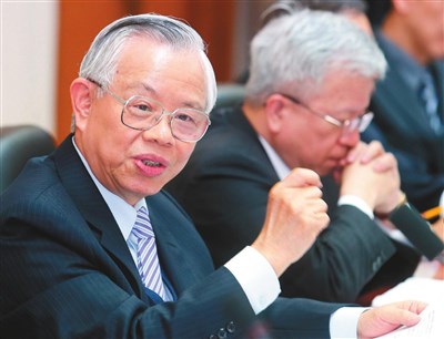 中央銀行昨天召開今年第一季理監事會議,央行總裁彭淮南(左)宣布貨幣政策維持不變;面對記者提問,他特別整理提出自己的「服貿懶人包」,認為自由貿易協議不可能只取不給,只要取大於給,簽署就有價值。圖/王騰毅