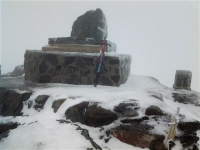 圖為玉管處保育巡查員3日在玉山主峰頂所拍攝雪況。圖/玉管處提供