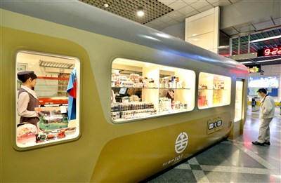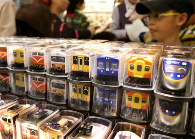 位於台北松山火車站的第三間「台鐵夢工廠」周邊商品專賣店今天開幕,以第一代自強號「英國貴婦」為造型,要搶攻鐵道迷的荷包。圖/屠惠剛