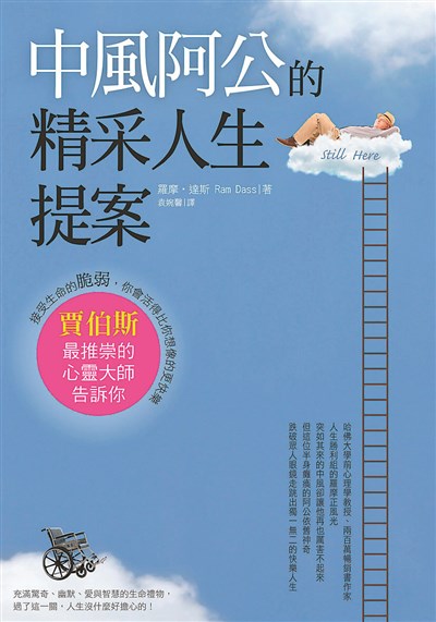 中風後,友人說他變得更像個人。他玩味這句話的意思,發現中風其實是一份最好的禮物,它讓他進入心靈層面,卻也找回自己的人性面。而他那本探討老化之書《Still Here》,原本結尾讓他頗為困惑,如今卻因這「不速之客」——中風——而了然於心。他找到一個可以跟讀者分享老化過程的更新觀點:原來「老化」不僅是一種角色,還開啟一個全新的生命,它本身就是「智慧的化身」。