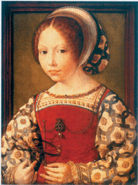 畫中的小女孩很有可能就是畫家贊助人的女兒賈桂琳,她的爸爸是勃根第的阿道夫,媽媽是貝爾格的安娜。從鑲有珍珠的衣裳和精緻的金銀珠寶,可以看出她應該出身於有錢又有地位的家庭。