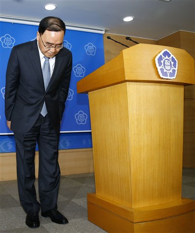 歲月號沉船事件處理不力,南韓總理鄭烘原引咎辭職。圖/美聯社