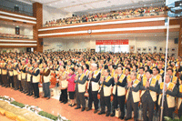 下午進行二百五十分會新舊會長交接,授證五十三位督導長,頒發五十三個優秀分會和表揚四位會長,選出區協會幹部和區會長。隨後心定和尚帶領新任幹部宣誓就職,總會感謝卸任幹部過去的辛勞,也期望新任幹部上任後能帶領佛光人持續協助弘法。