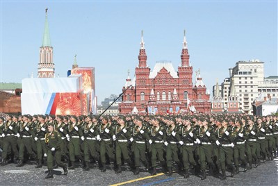 逾一萬一千名軍人,當天參與了年度的勝利日閱兵式;盛大部隊跟隨著銅管樂隊前進,總統普亭和一眾老將在看台上觀禮。普亭隨後向軍隊致辭,盛譽俄羅斯「無堅不摧」的愛國力量。普亭在響徹廣場的歡呼聲中說:「無堅不摧的愛國力量,在這個節日超越一切,我們特別強烈感受到忠於祖國的意義,以及有能力捍衛祖國利益的必要。」