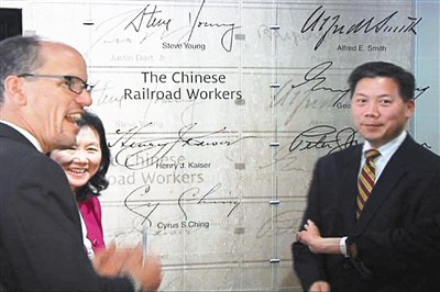 他說:「這個五月,我們慶祝中央太平洋鐵路建成一百四十五周年之際,同時也讓一群曾協助建設國家、堅強勇敢的工人,成為首批載入勞工部名人堂的亞裔美國人。」這是自美一九八八年設立勞工部榮譽榜以來首次載入亞裔人士。