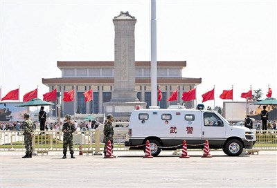 【本報綜合外電報導】因應近來連串暴力恐怖事件,北京警方從周一起在市內部署一百五十輛武裝巡邏車,每輛車組按照九名警察、四名輔警的標準配備,持槍長期駐守京城重點大街。