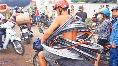 越南平陽省台商表示,許多民眾以反中為名,行洗劫之實,甚至還有越南民眾全家大小動員,從廠區搬出工業半成品。圖/中央社