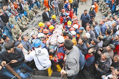 土耳其索瑪鎮煤礦十三日發生爆炸,大批人員前往救援。目前有八十五人獲救送醫,但其他人則被困在四公里深的礦坑中。