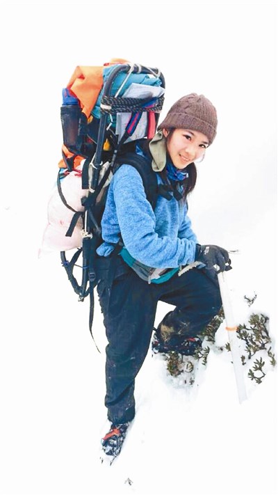 詹喬愉本身是專業攀岩教練與高山嚮導,四年前投入山域搜救義消,不僅外型亮麗,實際出勤紀錄很多。光是花蓮的山難救援就有三次。揹著重物全副武裝,在雪地裡,英雌不讓鬚眉。