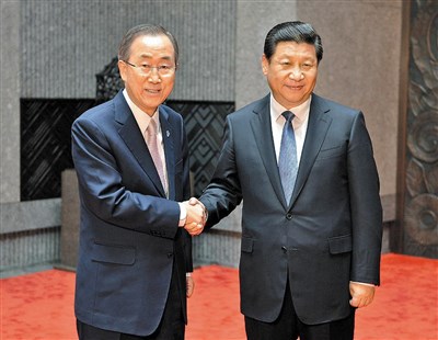 【本報綜合報導】大陸國家主席習近平昨天在上海會見聯合國秘書長潘基文時說,聯合國在反恐問題應有更大作為,並強調堅持政治解決衝突的方向。