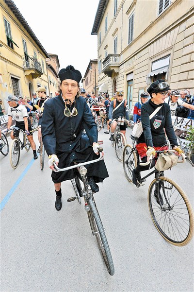歐洲單車風氣愈來愈盛,圖為本月初在義大利舉行的一場復古自行車賽。圖/法新社
