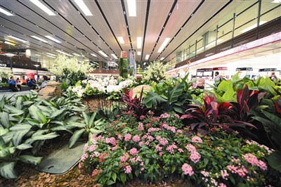 新加坡樟宜機場內有蝴蝶園、蘭花園等,令旅客心情放鬆。圖/新華社