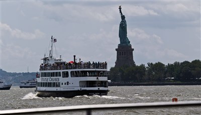 最新報告指出,氣候變遷造成的海平面上升,至少威脅30處美國重要史蹟,包括紐約港的自由女神像。圖/路透