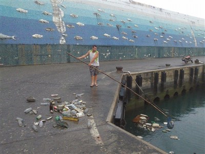 目擊過程的釣客「Randy Hou」在臉書上表示,「下班後衝往富岡港口釣魚,遇到1位老外在撈海裡的垃圾,我一時好奇,便下車問他為什麼這麼做?他說因為這裡看起來很髒」。