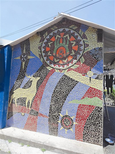 美麗的牆上展現的是水鹿的神話故事。圖/翁禎霞