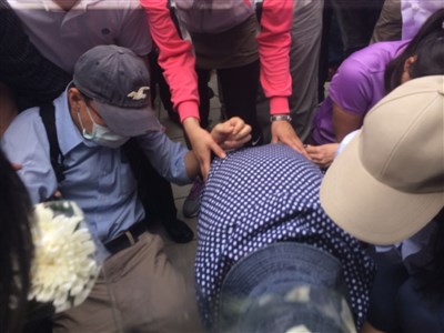 鄭捷父母到場後立刻跪下道歉,放聲痛哭久久不能自己。圖/余佳穎