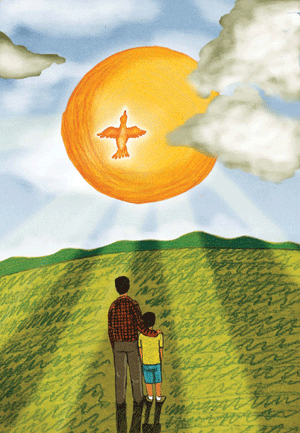 「兒子,這樣好了,我講個故事,看看能否幫你找到靈感。」故事是這樣的:有位樵夫在路上撿到一隻受傷的銀鳥,銀鳥全身有著閃閃發光的銀色羽毛,樵夫欣喜的把銀鳥帶回家,並專心替牠療傷。療傷的日子裡,銀鳥每天唱歌給樵夫聽,彼此過著快樂的日子。