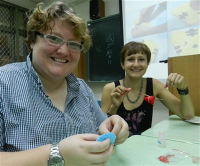 該校美籍教師賴潔妮利用課餘時間到語言中心當學生,縫製香包的熟練度令眾人刮目相看。她說,中學時參加縫紉社團,本想從事縫紉工作,沒想到遠渡重洋來台當老師,台灣是個可愛的地方,吃粽子、縫香包,真的很有趣。