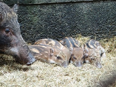動物園今天表示,「泰大花」於3日順利產下2公2母,這4隻小野豬出生時體重分別為942、904、862和849公克,身上具特殊保護條紋。動物園已為牠們植入晶片及施打疫苗,並分別命名為「恆山」、「華山」、「山茶」及「山櫻」,希望公的長得像山一樣強壯、母的出落得像花一般高雅。