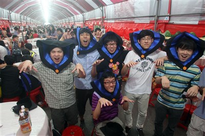台大今天於晚間6時延續往年傳統,在椰林大道辦桌為慶祝,畢聯會以「呷好飯碗」象徵踏入社會的祝福,並舉辦表演活動、抽獎,讓畢業生帶著滿滿的回憶離開校園。