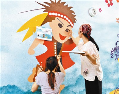 「我只要求表現鹿與勇士意象,沒想到,學生設計的圖稿遠超出我預期,這會是最理想的鄒族文化故事牆!」楊尚峰說,逐鹿社區是鄒族祖先的獵場,勇士與梅花鹿最能傳達傳統狩獵文化,襯著遠山與山櫻花,意境優美,「很感謝學生為社區門面注入新氣象。」