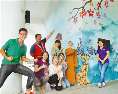 由佛光山慈善院舉辦的「走進部落‧看見真原—生存、生活與生命之交流」活動列車,日前開進終站逐鹿社區,主任妙仁法師帶領南華五人團隊,到部落服務,以二天完成彩繪。