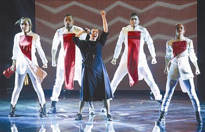 克里斯蒂娜與舞團在台上忘情高歌。圖/美聯社