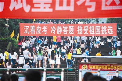 中國大陸二○一四年全國高考昨天拉開帷幕。圖為昨天考生進入重慶市璧山縣璧山中學考點。圖/新華社