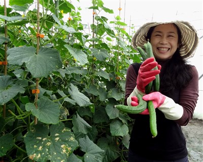 【本報屏東訊】擁有雙碩士學位的何雨宣,原本是台北都會女子,今年二月一通幫父親詢問「怎麼種出好吃番茄?」的電話,沒想到人生劇本改變,返鄉改當農夫。抱著自己親手栽種的小黃瓜,她笑說:「務農,一點都不簡單呀!」