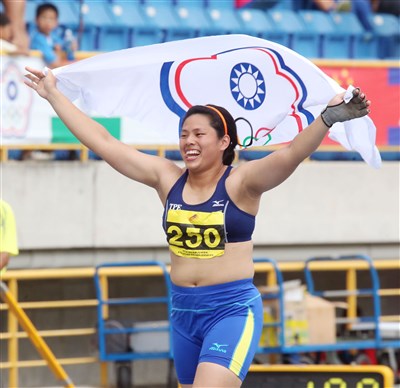台北亞青田徑賽第3天賽程,中華隊選手洪琇玟(圖)在女子鏈球決賽擲出56公尺81勇奪金牌,也是中華隊的第2金。圖/中央社