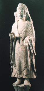 山東青州是中國北朝晚期佛教最興盛地方之一,當時寺院盛行供奉石雕佛造像,此時期的佛像五官俊秀,神情恬靜優美,臉上流露的是清純喜悅的微笑。