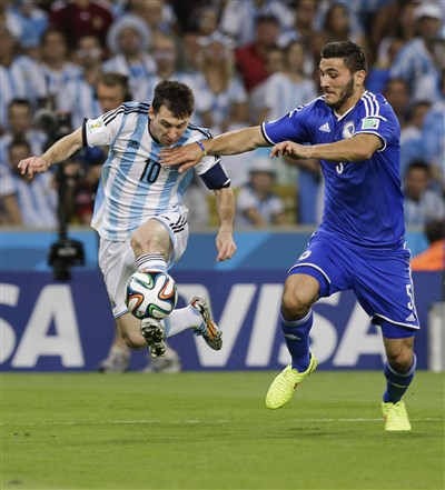 在世足賽場合總讓人失望的梅西,上一次在世足賽進球是2006年德國世足,今天終於把招牌的神技一起帶進全球最矚目的舞台。阿根廷在小組賽首演面對第一次進軍會內賽的波士尼亞,梅西在下半場65分鐘展現帶球與射門一氣呵成的精湛技術,連續晃過幾名防守球員後,在禁區線附近射進世足賽相隔8年的首顆進球,帶領阿根廷以2:1擊敗波士尼亞,搶下首勝。