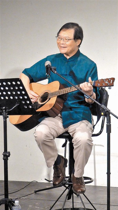 【本報高雄訊】衛武營藝術文化中心籌備處六年前,透過文化部「媒合演藝團隊進駐演藝場所合作計畫」,與民謠大師簡上仁(圖/梁雅雯)合作「衛武營台灣音樂傳習計畫」,在衛武營開課成立田園樂府樂團,進入社區、校園推廣台灣鄉土歌謠。