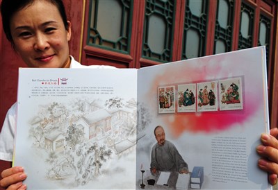 紅樓夢套票發行儀式在河北省正定縣榮國府景區舉行,首發儀式吸引很多集郵者前往購買。正定市民戴景龍拿到紅樓夢主題郵票並加蓋紀念戳時,興奮地說套票非常值得收藏,因為以畫作呈現名著中的精彩故事。