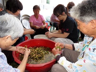 南安社區婆婆媽媽聚集清洗破布子。圖/周宗禎
