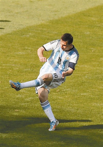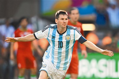 梅西昨天對伊朗這一記進球,擦亮球星招牌,讓阿根廷舉國歡騰,也喚醒阿根廷人對馬拉度納的記憶,希望梅西在巴西複製馬拉度納率阿根廷奪冠的輝煌事蹟。馬拉度納參過四屆世足,二十場比賽進八球,球隊勝率六成;梅西已踢了三屆,十場比賽進三球,勝率八成。