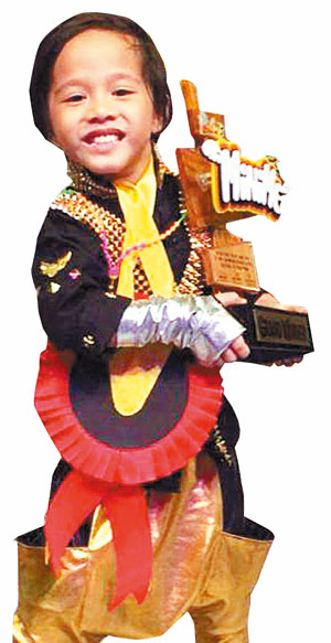 【本報綜合報導】菲律賓年僅五歲的男童尼奇‧寇馬(Nhikzy Calma 圖/中央社、取自網路),在綜藝節目中模仿麥可傑克森勇奪冠軍,維妙維肖的舞步令他在菲國爆紅,贏得「迷你麥可」的暱稱。