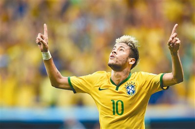 這場攸關巴西分組排名的戰役,再度靠著身高僅一七四公分、年僅二十二歲的「小巨人」內馬爾(Neymar,見圖/法新社)「梅開二度」挺身而出。
