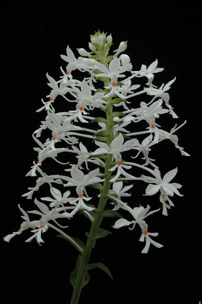 農委會桃園農改場副研究員李淑真表示,白鶴蘭原本在海拔50至1500公尺的山林四處可見,但因過度開發,現在野外幾乎看不見。近年研究人員開始育種,從17種根節蘭屬蘭花中,找出較常見的14種,再從中選出3種適合在平地栽培的花卉,白鶴蘭就是其一。