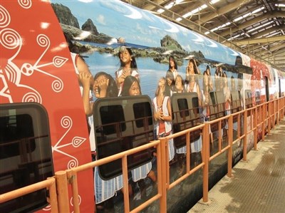 花東鐵路電氣化明天通車,台鐵特別邀請多次入圍葛萊美獎唱片設計師的蕭青陽為「普悠瑪」號彩繪。他結合東台灣「熱氣球」、「草原的風」、「南島椰林」、「太平洋的風」、「稻米香」、「豐年祭」、「第一道曙光」、「部落之美」等8大印象設計普悠瑪。彩繪照片今天曝光,看過的民眾都大讚「好美喔!」圖/台東縣政府提供