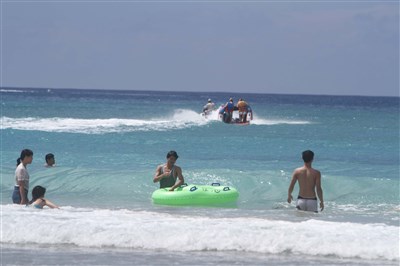 新制上路首日,墾丁晴空萬里,風浪沒達警示標準,海邊不少戲水人潮。圖/中央社