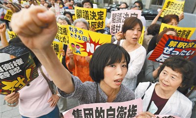 日本輿論指出,新的「武力行使三條件」彈性很大,新的政府解釋開啟日本在海外參與戰爭道路。由於可在本國未受到攻擊時反擊,可能超出一九五四年自衛隊成立以來堅持至今的「專守防衛」框架。