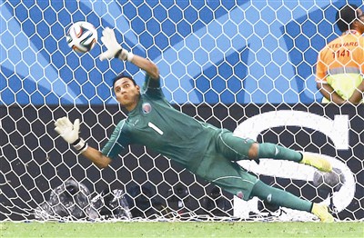 【本報綜合外電報導】靠著門將納瓦斯(Keylor Navas)驚險撲救出希臘基卡斯(Theofanis Gekas)的踢球,哥斯大黎加在PK大戰以五比三險勝,風光晉級八強,創下該國史上最佳戰績。