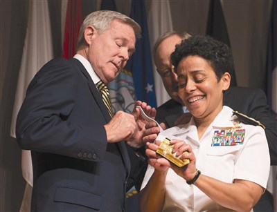 霍華德(Michelle Howard)在一日的儀式中升任海軍作戰部副部長,成為海軍第二號人物。